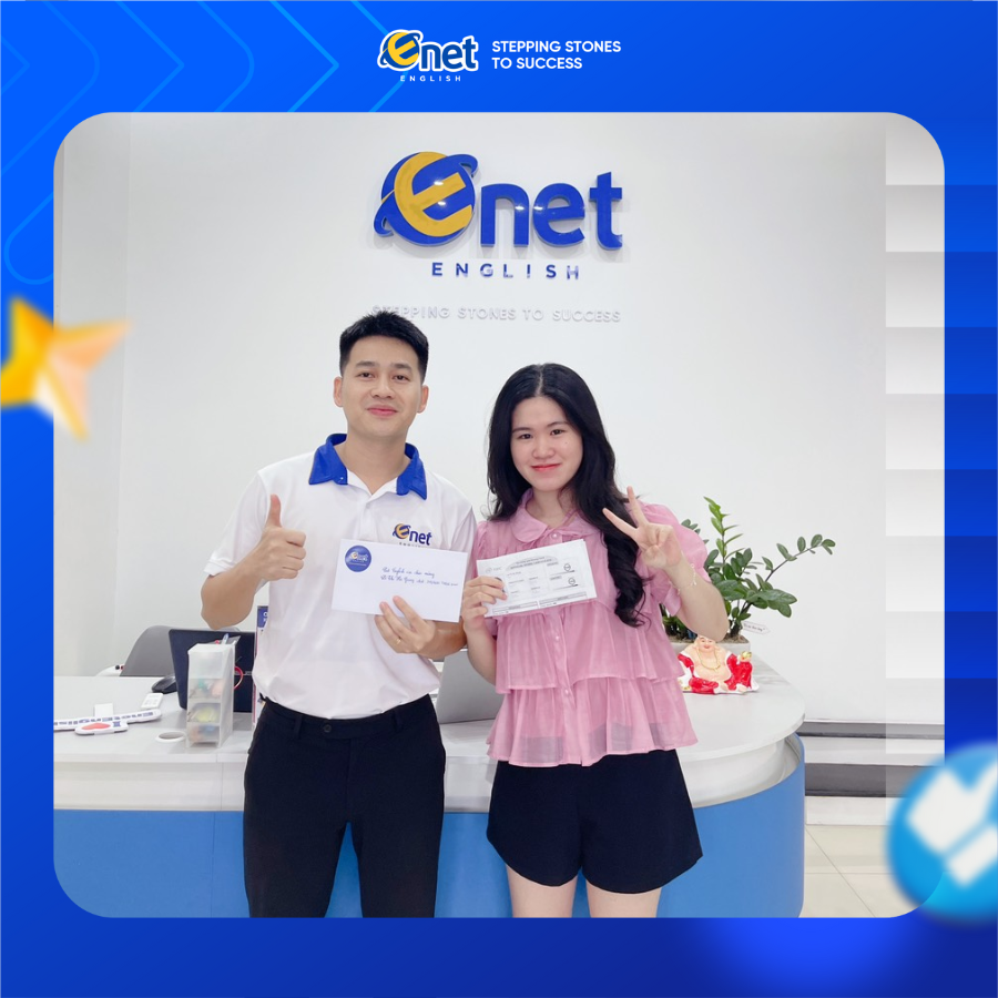 “Tại ENET, thầy cô sẽ take care cho các bạn từ A-Z từ lúc bắt đầu cho đến sau khi kết thúc khóa học. Các thầy cô không chỉ có kiến thức sâu rộng về chuyên môn mà còn rất nhiệt tình và tận tâm trong việc giảng dạy. Mỗi bài học đều được chuẩn bị kỹ lưỡng và trình bày một cách rõ ràng, dễ hiểu. Ngoài lề một chút là phòng thi Speaking cực kỳ ồn. Nếu bạn tâm lý không vững thì trong lúc luyện tập có thể bật video tiếng ồn, đồng thời tích cực ôn tập các tài liệu mà thầy/cô ENET đã gửi thì mình tin chắc rằng bạn sẽ đạt được target như mong đợi.” – Hà Giang, sinh viên ĐH Kinh Tế.